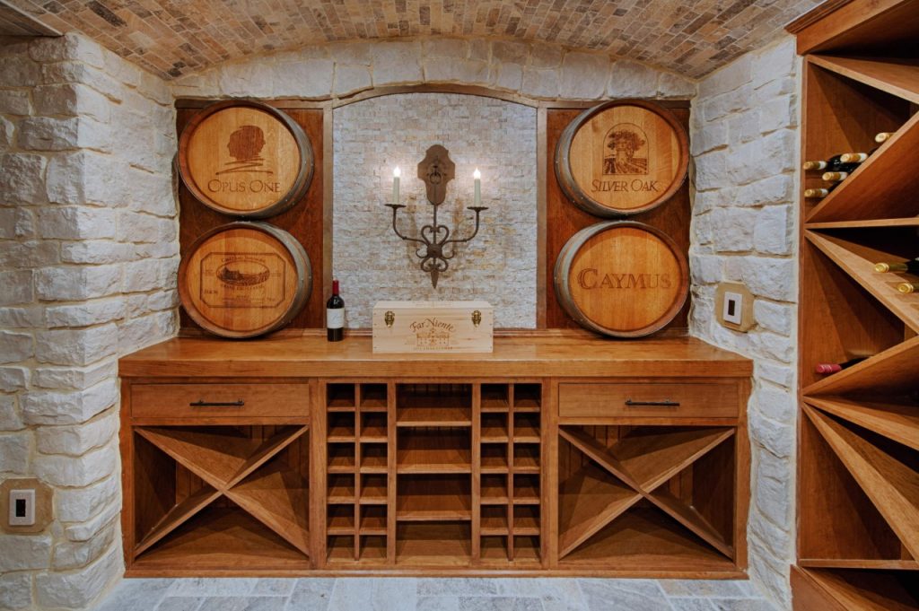 Consider this luxury wine cellar we created for a homeowner who is an avid collector. It feels like you’re transported to another period of time when you enter the room; the rustic atmosphere is cool, cozy and inviting. Complete with a barrel ceiling, custom-made cabinetry, a tasting table, and an Italian chandelier, this space accomplished a true wine cellar experience.
