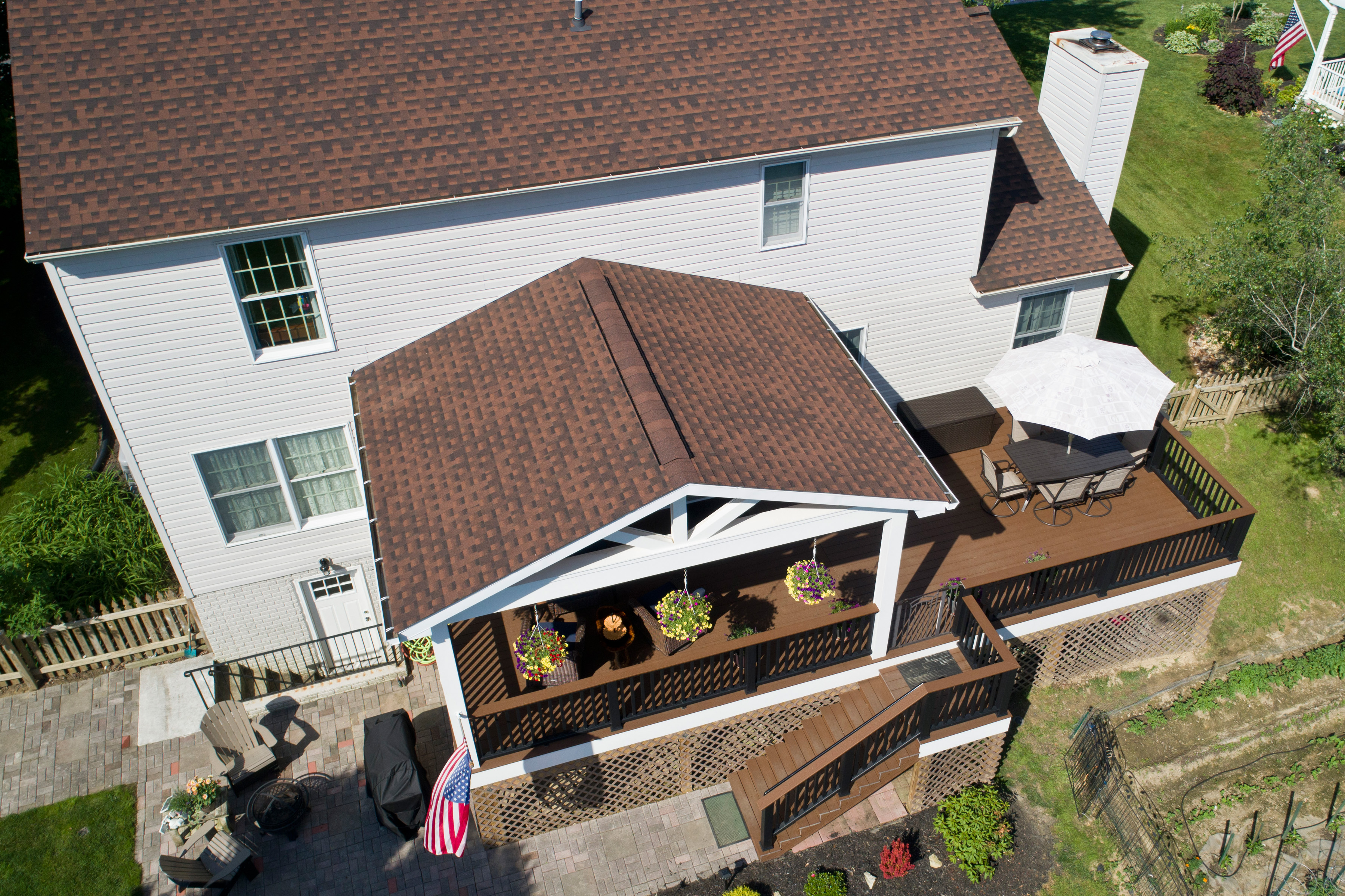 This spacious deck is the best of both worlds. A covered porch provides refreshing shade while an open deck adjacent to it offers a chance to soak up the sun. From the moment you step out on this porch, you are welcomed by a soft breeze and feelings of peace and quiet. With ample room to lounge and entertain loved ones, this outdoor space feels like home.
