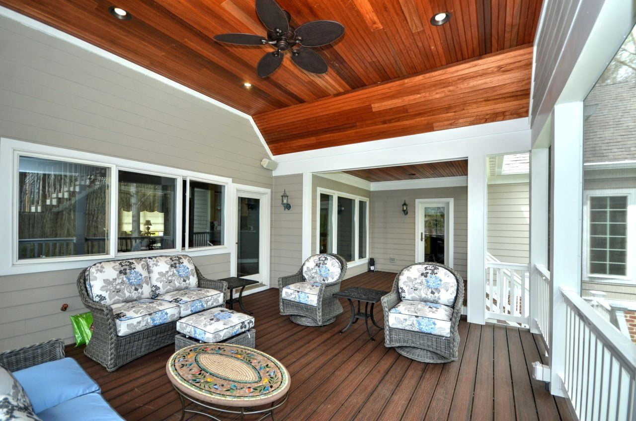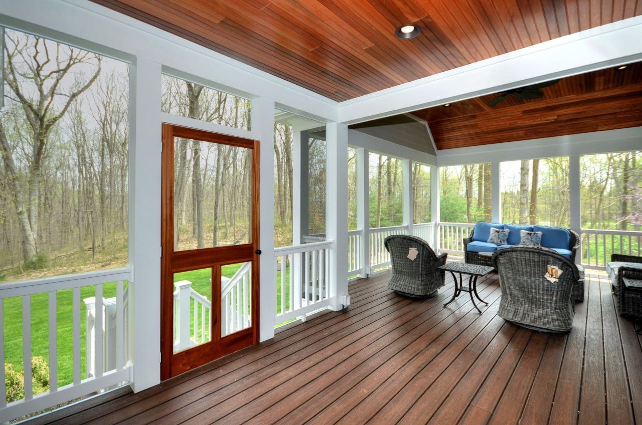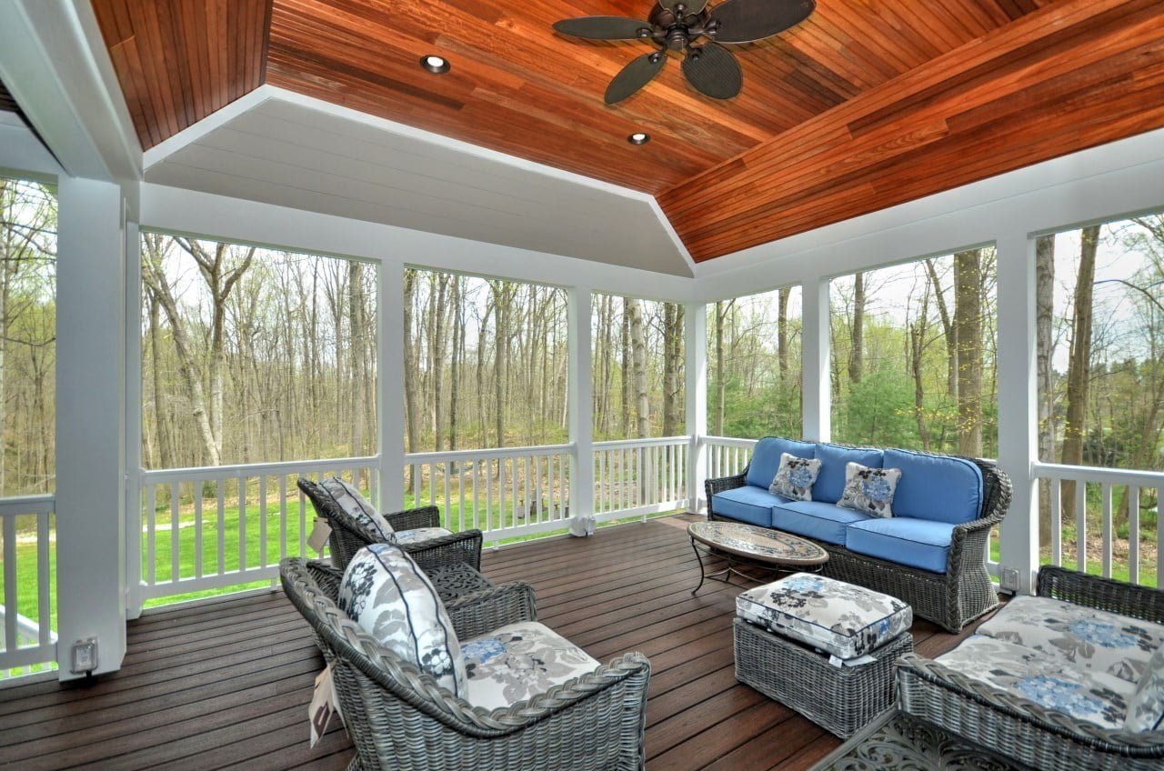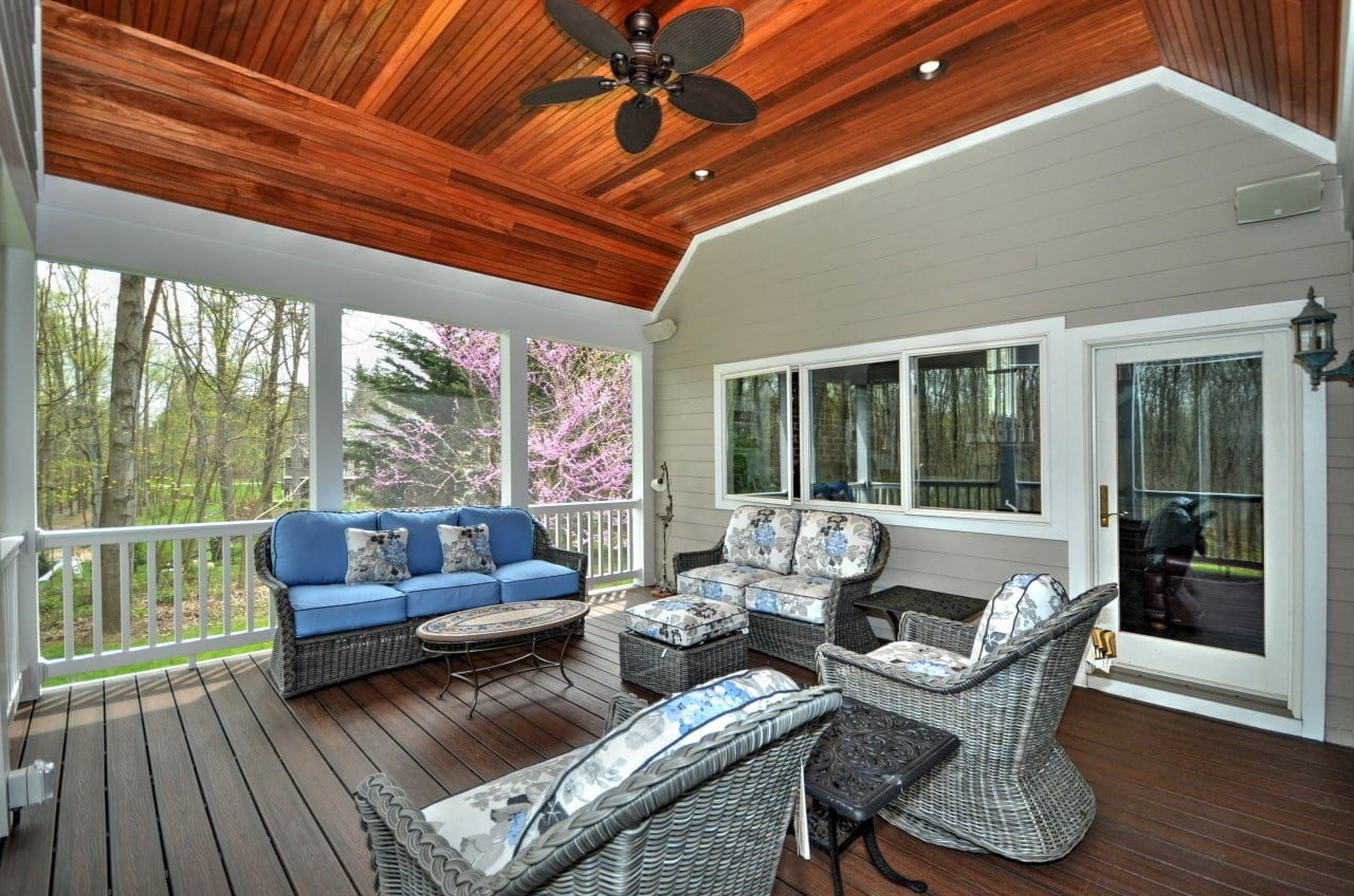 The most cherished parts of our homes are the spaces where we can host and entertain loved ones. This spacious, screened-in porch off the kitchen allows these homeowners to do just that. Their desire was to have a unique space off the kitchen and dining room to be able to spend time with friends and family. With ample space and seating, it’s the perfect place to kick back with a book or have good conversations with guests. The open view of the woods behind the house offers tranquility and a feeling of solitude.